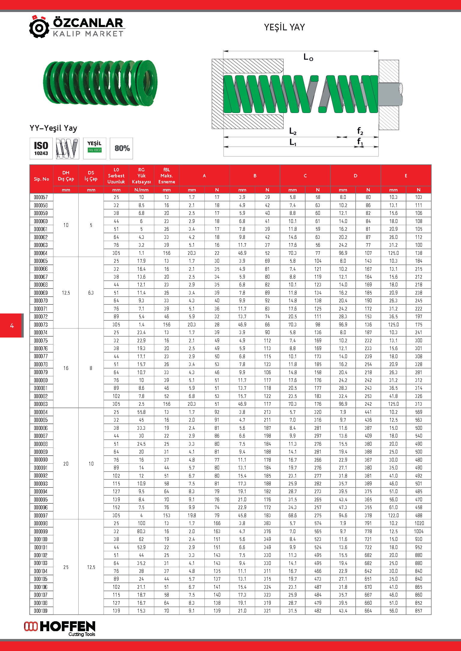 PSE marka Yeşil Yay - Hafif Yük Kalıp Yayı, kalıp yayları ürünleri için kalıp ve bağlama uygulamalarında dayanıklı kullanım sunar.
